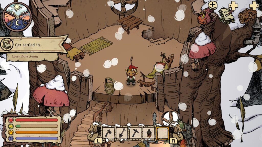 Im Kern ist Winter Burrow ein Survival-Spiel mit Tiefgang. Auch wenn der erste Eindruck eher „kuschelig“ ist. Du beginnst mit sehr wenig und musst dich darauf einstellen, dass die Welt um dich herum rau und unbarmherzig sein kann. Die Mechaniken sind dabei weder überladen noch redundante Pflichterfüllung. Sie fordern dich heraus, ohne dich zu überfordern.